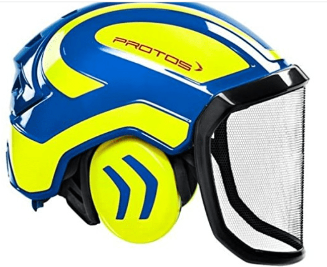 Per Treeclimber e lavoratori a terra grazie alla doppia certificazione Protos Integral Arborist è un elmetto protettivo per motosega con sottogola, protezioni acustiche, visiera e assorbitore di impatto Protos. Protezione dell’udito facilmente sostituibile. Vestibilità morbida e aderente delle cuffie. Sportello di ventilazione scorrevole. Perfetto adattamento a tutte le forme della testa.