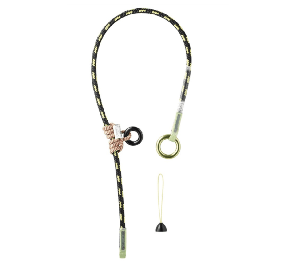 Falsa forcella Edelrid con Prusik prefabbricato (Tibor 8 mm) per la regolazione della lunghezza. Con anelli in alluminio di diverso colore (anello grande Ø interno 40 mm / esterno 64 mm, anello piccolo Ø interno 28 mm / esterno 53 mm) e fettuccia bicolore per una più facile installazione e rimozione da terra. L’estremità irrigidita impedisce che la falsa forcella si impigli durante la rimozione. Con palla da riporto e terminazione Weblink.