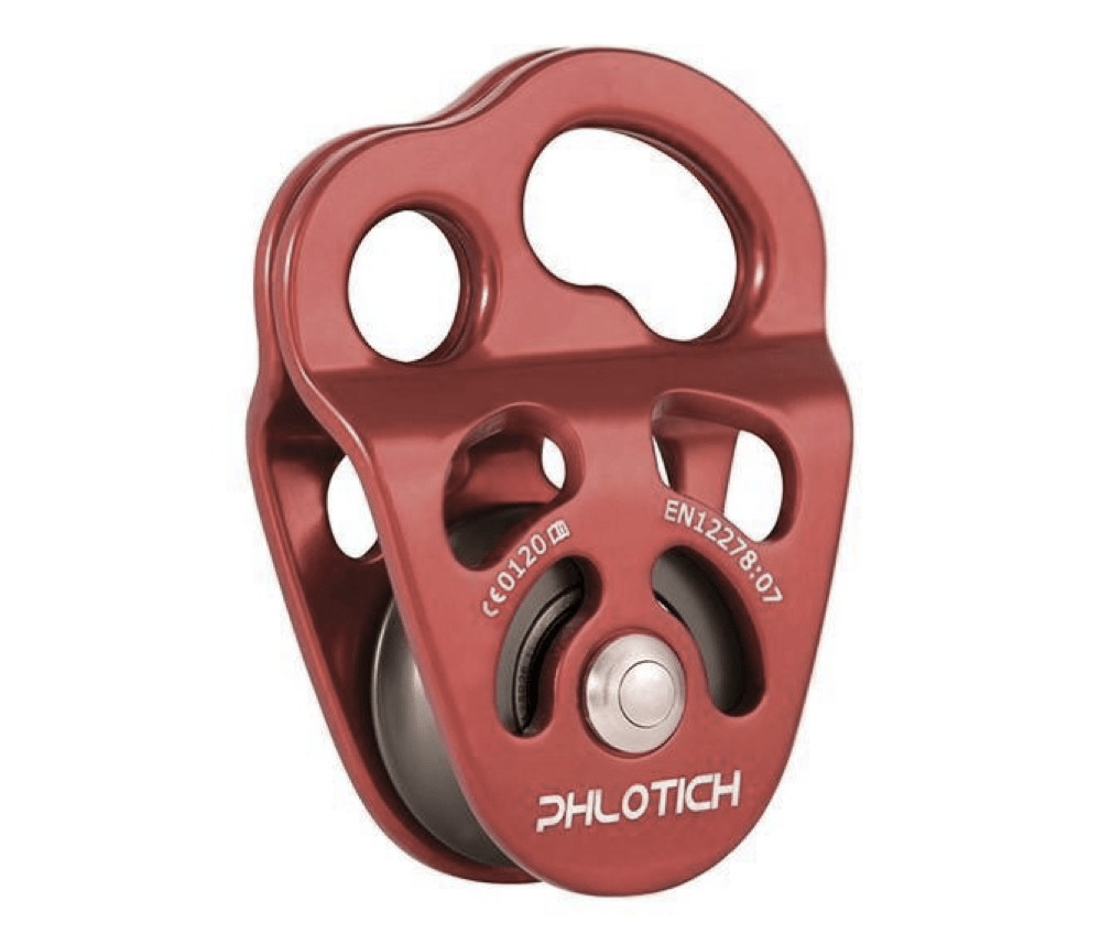 La carrucola Phlotich RP282 è stata appositamente progettata da ISC per l’utilizzo in un sistema di arrampicata con corda singola e doppia. Le piastre laterali mobili si chiudono in modo assolutamente parallelo e garantiscono un collegamento pulito dei moschettoni di ancoraggio. La puleggia Phlotich funziona perfettamente anche in combinazione con un sistema di chiavi a fune con Double Tether. L’esclusivo punto di attacco a forma di rene consente una varietà di forme di moschettone e la possibilità di utilizzare due moschettoni in un punto. I moschettoni possono ruotare completamente e centrarsi automaticamente. Ciò riduce anche il rischio di carico laterale.