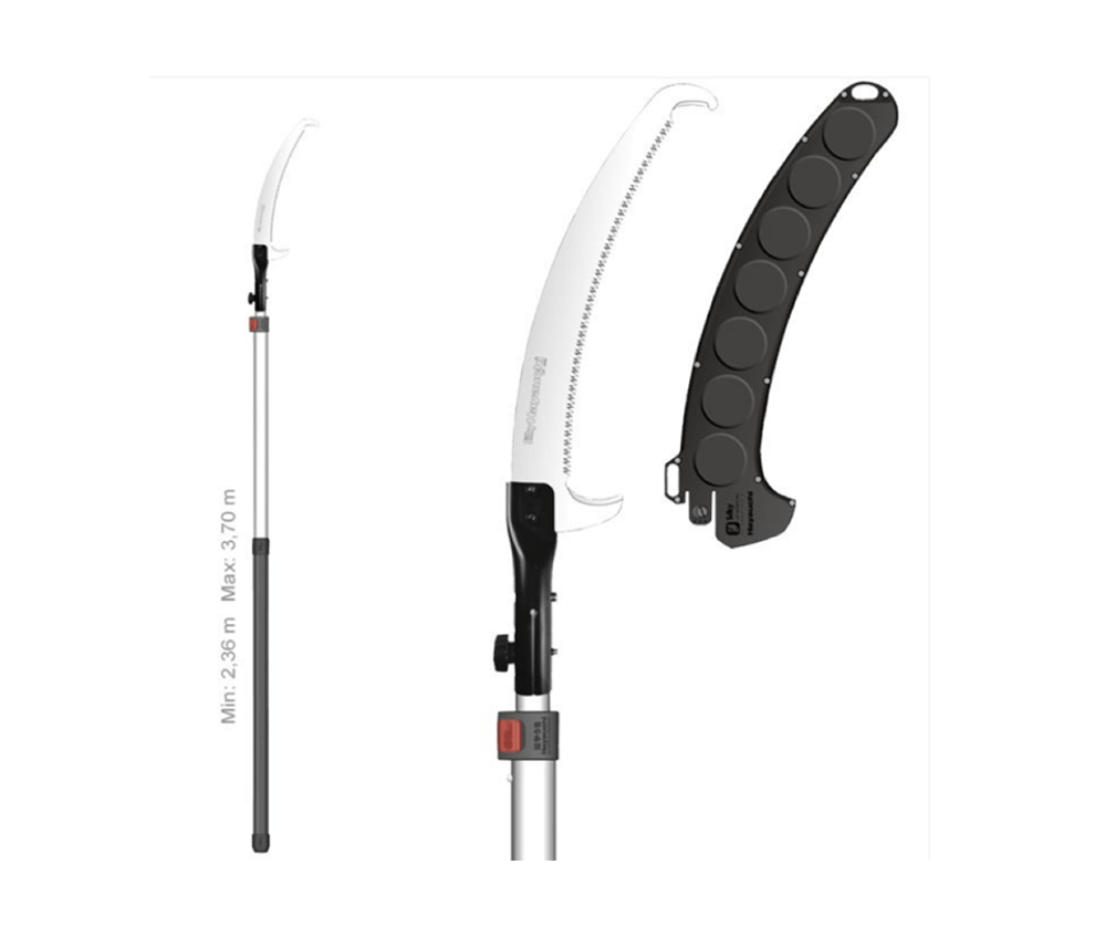 Il classico tra le seghe a palo Silky è dotato di aste di prolunga rigide in lega di alluminio di forma ovale, comoda impugnatura in gomma e un ammortizzatore all’estremità dell’asta. La lama della sega ad alte prestazioni da 39 cm con 6,5 denti per 30 mm consente tagli rapidi e precisi anche di rami di grandi dimensioni. Una combinazione ben bilanciata di robustezza, controllo preciso, leggerezza e distanza operativa rende Hayauchi perfetto per il lavoro professionale sugli alberi.