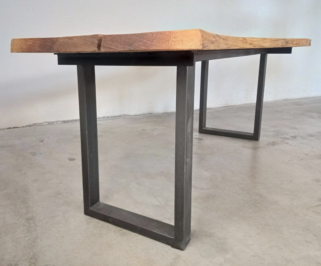 Tavolo in quercia con struttura in ferro